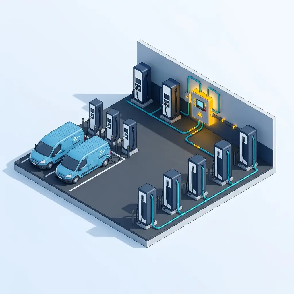 Older depot with limited panel capacity. They used smart load sharing for 10 vehicles charging 6 at a time without a full service upgrade. Saved roughly $40,000 compared to the upgrade-first quote we got from another contractor.